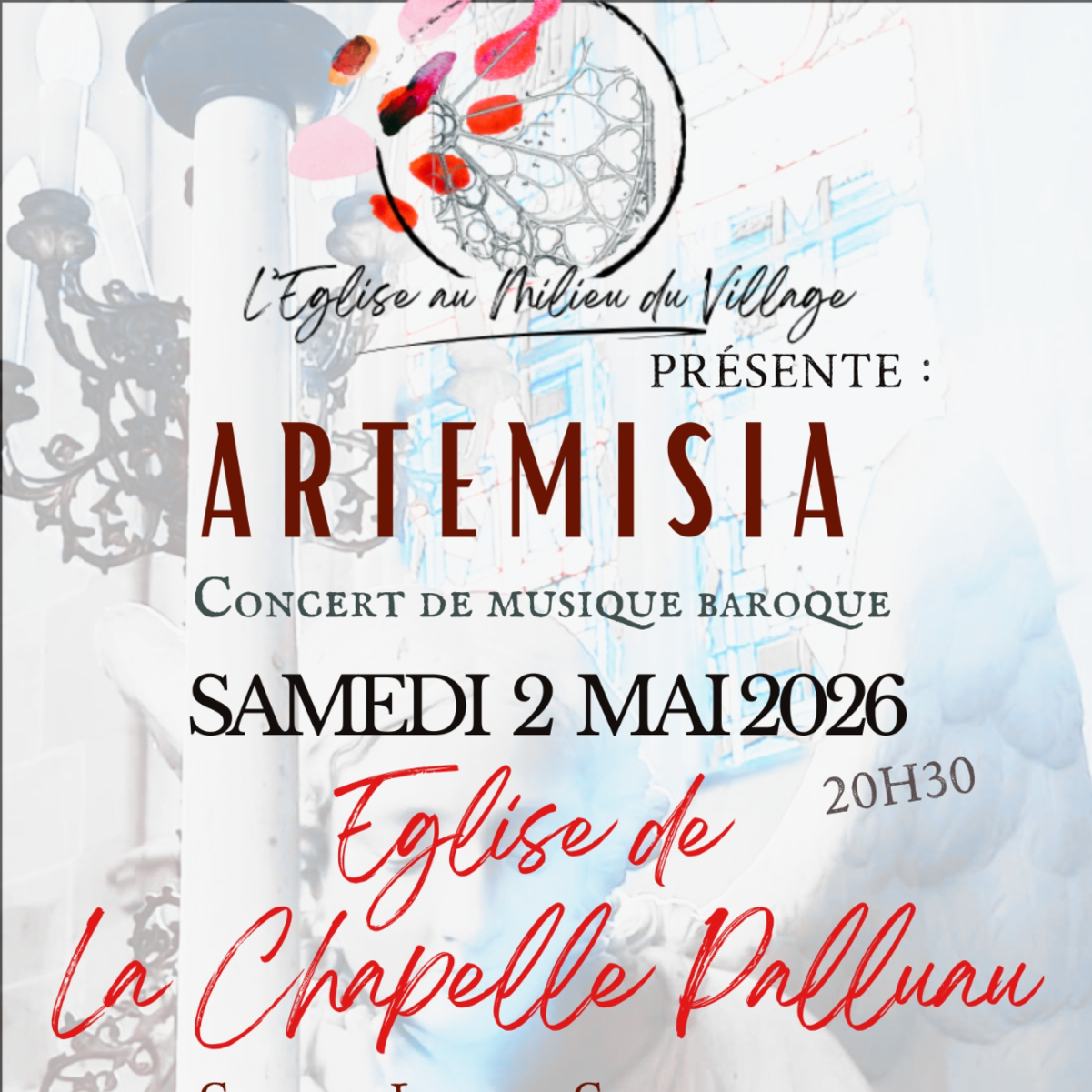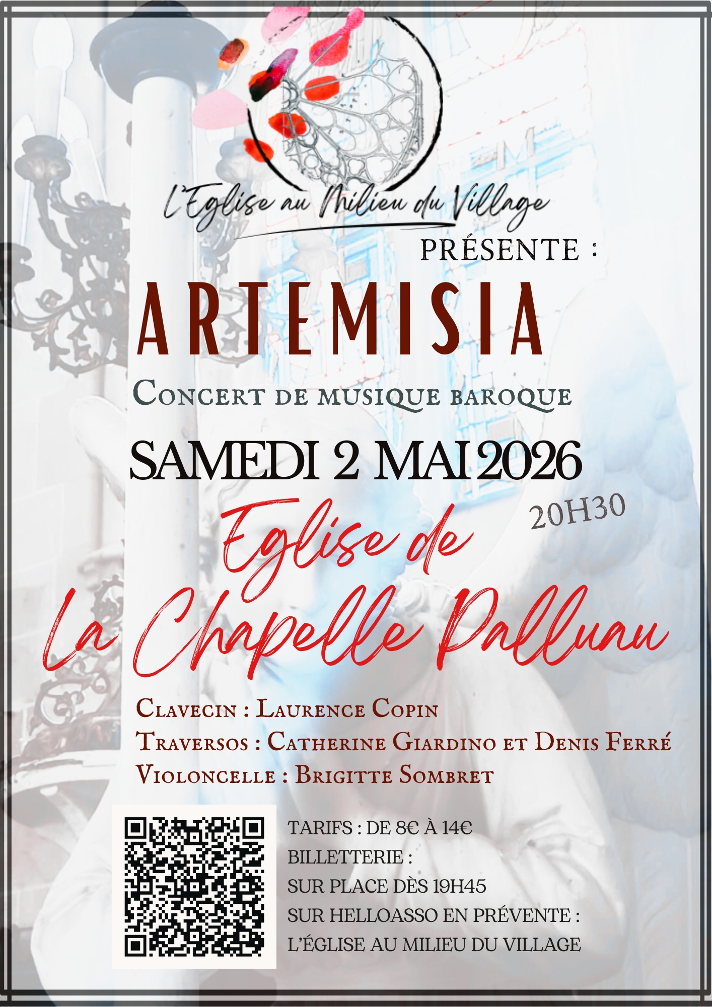 L’association L’Église au Milieu du Village vous invite à un concert de musique baroque le samedi 2 mai 2026 à 20h30, à l’église Saint-Pierre de La Chapelle Palluau.
