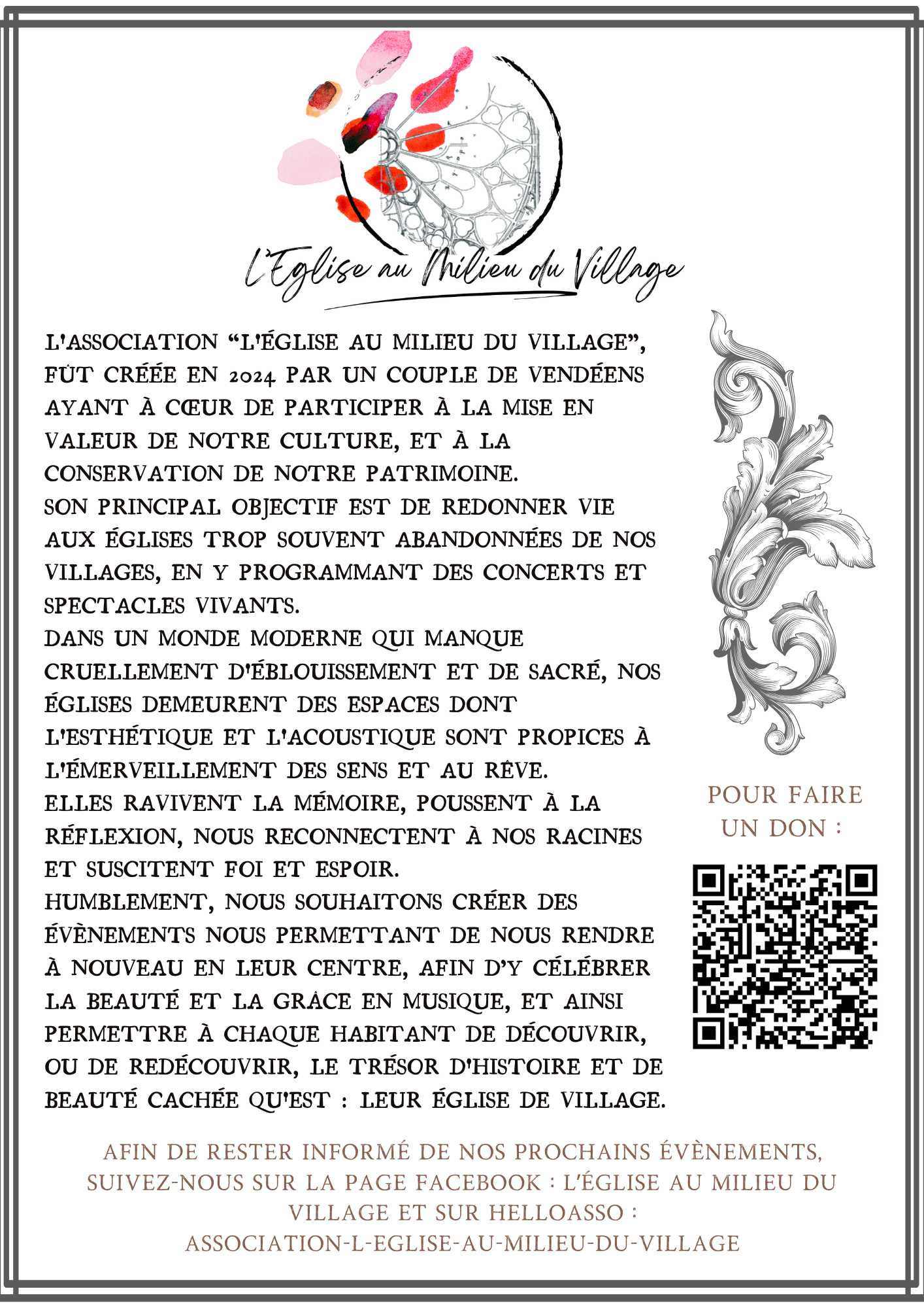 Cet événement s’inscrit dans la mission de l’association : redonner vie aux églises de villages souvent oubliées en y organisant concerts et spectacles vivants, pour faire dialoguer musique, patrimoine et rencontres humaines.